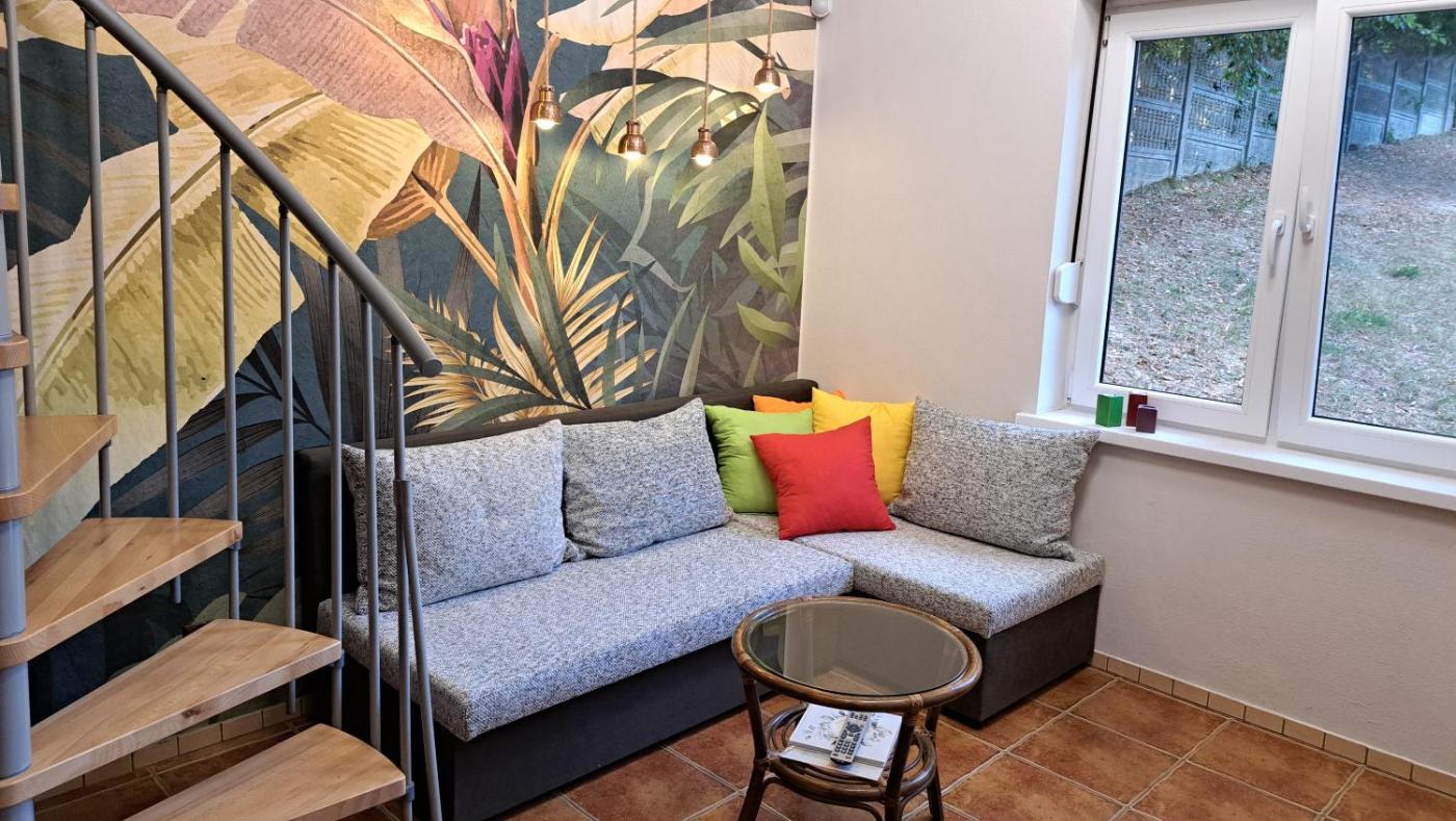 Dom z 2 sypialniami. This holiday homes standout features are the pool with a view and fireplace. Guests will find a stovetop, a refrigerator, kitchenware and a microwave in the well-equipped kitchenette. The holiday home also has a barbecue. The holiday home offers a washing machine, a private entrance, a terrace with garden views as well as a shared bathroom featuring a walk-in shower. The unit offers 4 beds and 1 futon. Dom wakacyjny - 6 osobowy. Powierzchnia pokoju ok.: 48 mkw.