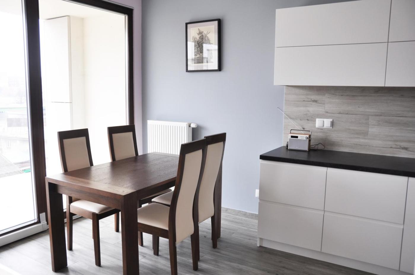 Apartament. Featuring 2 bedrooms, this spacious apartment offers 1 bathroom with a bath, a seating area and terraceyou can relax. In the kitchen, guests will find a stovetop, a refrigerator, a dishwasher and kitchenware. The apartment provides a washing machine, a tea and coffee maker, a dining area, a flat-screen TV, as well as city views. The unit has 2 beds. Apartament - 3 osobowy. Powierzchnia pokoju ok.: 65 mkw.